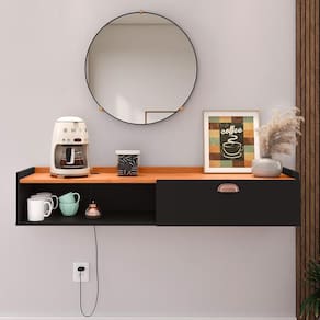 O Aparador Suspenso Classic une praticidade e estilo, sendo a escolha perfeita para otimizar ambientes compactos. Seu design minimalista apresenta um nicho e uma porta discreta, ideais para organizar pequenos objetos ou exibir itens decorativos com sofisticação. Versátil e funcional, é adequado para salas, cozinhas ou áreas de café, contribuindo para um espaço organizado e elegante.