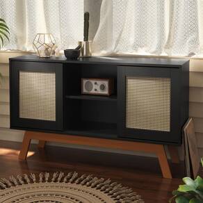 O Aparador Rattan duas portas e a mais nova criacao da Ofertamo, com design moderno e inovador deixando o ambiente de sua casa ainda mais elegante e sofisticado. Ele conta com estrutura 100% MDF e Pes em madeira pinus, proporcionando mais qualidade ao produto. Portas com rattan sintetico, nova tendencia que embeleza ainda mais o seu produto.