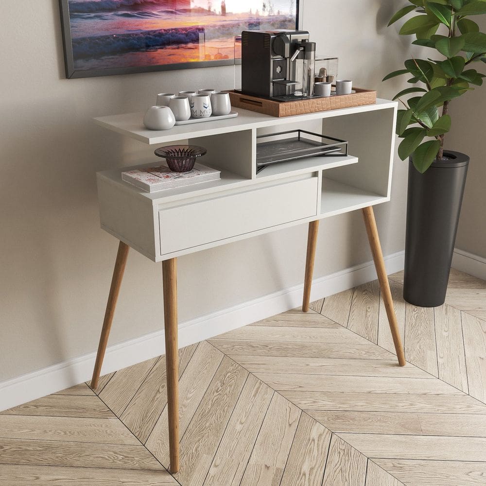 Aparador Buffet com Porta e Nichos para Sala Pés Palito Retro Branco