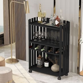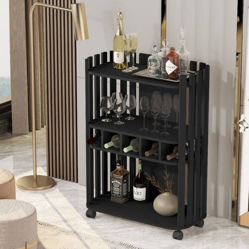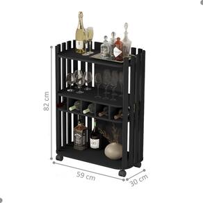 Estrutura em MDF. Conta com uma adega interna para acolher até 5 garrafas,ripas nas laterais e 4 rodizios faclitando o manuseio do produto.