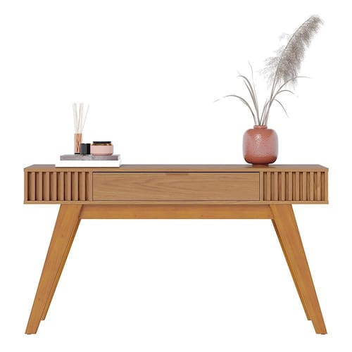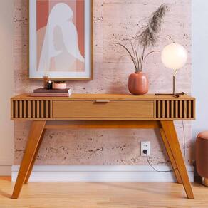 O Aparador Rivieira Ripado combina funcionalidade e funcionalidade para compor a decoração com charme. Com estrutura em MDF e MDP e pintura UV, oferece durabilidade e um acabamento sofisticado. Possui uma gaveta central com corrediças telescópicas para deslize suave, além de puxador metálico dourado que agrega sofisticação. Seu detalhe ripado nas laterais e pés em madeira traz um toque retrô ao design. Com tampo espaçoso, é ideal para organizar e decorar o ambiente. Seu tampo suporta até 10 kg, sendo perfeito para sala de estar ou hall de entrada com estilo e praticidade.