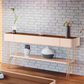 O Aparador de Sala pode ser tanto na Sala De Estar quanto no hall de entrada, na cozinha ou no quarto. Ele serve para apoiar objetos decorativos, livros, plantas, luminárias e até mesmo servir de bar. Um modelo que se destaca pela beleza e qualidade é o Aparador Com Prateleira, ideal para compor a decoração ou ser utilizado como divisor de ambientes. Esse aparador tem um design contemporâneo, que combina as formas orgânicas dos cantos arredondados com os filetes decorativos nas laterais, que dão um toque de charme e sofisticação. Fabricado em MDF de 15mm, materiais resistentes e duráveis, que garantem a estabilidade e a segurança do móvel. Os pés são de aço maciço, com acabamento em tom dourado, que conferem elegância e requinte ao aparador. A prateleira inferior de 25mm é perfeita para guardar revistas, cestos ou outros itens que você quiser organizar ou expor. Uma peça que valoriza o seu ambiente, trazendo funcionalidade e estilo para a sua casa.
