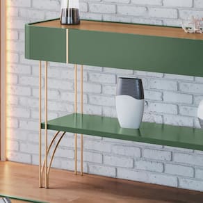 O Aparador Sala de Estar Vivant personifica requinte e sofisticação em peças contemporâneas, destacando-se pela valorização das formas orgânicas e cantos arredondados. Seu design versátil inclui uma prateleira inferior de 25mm, perfeita tanto para complementar a decoração quanto para funcionar como um elegante divisor de ambientes. As laterais apresentam delicados filetes decorativos, adicionando um toque de charme. A estrutura do aparador é sustentada por pés de aço maciço 3/8, proporcionando estabilidade e elegância, com um requintado acabamento em tom dourado. Fabricado em MDP e MDF de 15mm, o Aparador Vivant é mais do que um simples móvel, é uma expressão de estilo e bom gosto para elevar o ambiente da sala de estar a um patamar de elegância contemporânea.