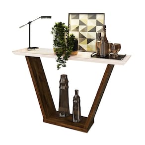 O Aparador Lótus de 136 cm de largura é uma peça de mobiliário funcional e elegante, perfeita para trazer sofisticação e modernidade aos ambientes. Com uma estrutura robusta em MDF e MDP, na cor Trufa/Creme acabamento em pintura UV texturizada, possui um design vazado em formato triangular, criando um visual leve e interessante, ideal para compor decorações mais contemporâneas. Além do mais, seu tampo chanfrado de madeira possui vidro, o que é ótimo, pois além de dar um visual elegante, o vidro facilita a limpeza. Esse aparador é projetado para suportar até 15 kg sem tampo e 15 kg na prateleira, o que permite uma diversidade de possibilidades de decoração. É um móvel ideal para ambientes como hall de entrada, salas de estar, áreas de circulação ou até mesmo como apoio em um escritório. Para decorá-lo, considere colocar no tampo objetos como vasos de plantas, esculturas ou luminárias de mesa para criar um ambiente aconchegante. Livros, porta-retratos e caixas organizadoras podem dar um toque de personalidade e utilidade à peça, enquanto bandejas com pequenos objetos decorativos adicionam um ar sofisticado. Na prateleira, você pode adicionar cestos decorativos ou peças que complementem o estilo escolhido. Seu design triangular com vazado é um diferencial que harmoniza especialmente bem em ambientes minimalistas ou modernos. Invista no Aparador Lótus e dê vida a um espaço único e moderno, com uma peça que combina perfeitamente com qualquer decoração!