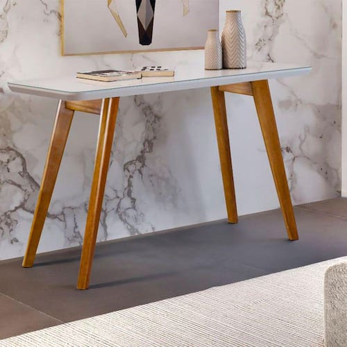 Aparador Slim Com Tampo de Vidro e Madeira Maciça Moveis Mix.