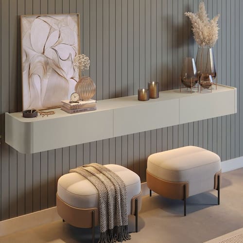 Nicho suspenso com design minimalista e acabamento amadeirado, ideal para hall, corredor ou sala. As linhas retas com cantos arredondados deixam o visual leve e sofisticado, enquanto a prateleira é perfeita para apoiar livros, vasos e objetos do dia a dia, mantendo tudo organizado e à mão. Uma solução prática para decorar com elegância e otimizar o espaço, criando um ponto de destaque na parede sem pesar no ambiente.