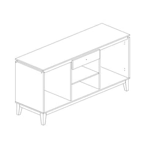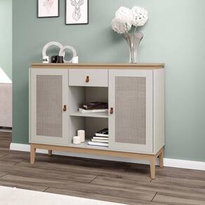 O aparador MB 1002 possui estrutura em MDP 15mm e acabamento em pintura UV. Costas 3mm. Possui 1 prateleira que suporta 5kg, 2 portas de bater com dobradiças metálicas e 1 gaveta com corrediça telescópica e que suporta 5kg. Puxadores do produto são alça em couro. Produto possui 4 pés em madeira maciça com altura de 20cm. Tampo em MDP 15mm. Produto suporta até 30kg. Conteúdo da embalagem: móvel, ferragens e manual de montagem. A fixação das peças e/ou acessórios é feita por parafusos, cavilhas e minifix. Para uma limpeza mais efetiva, utilizar apenas pano macio umedecido e sabão neutro. Não utilizar produtos abrasivos. Garantia de 03 meses contra defeitos de fabricação. Medidas do produto (AxLxP): 94x119,4x38,5cm. Peso do produto: 32,4kg. Marca: Não Informado