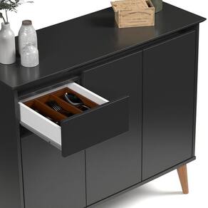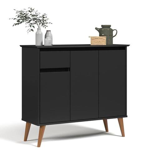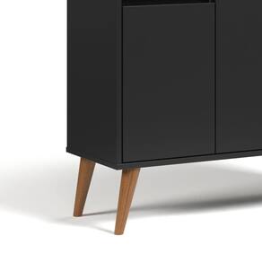 Aparador Veneza Preto O Aparador Buffet Veneza é a união perfeita entre sofisticação, praticidade e design contemporâneo. Ideal para compor salas de jantar, estar ou espaços sociais, ele oferece um visual limpo e funcional, com excelente aproveitamento interno.Com tampo em MDF usinado e estrutura firme com pés em madeira, o móvel traz um acabamento refinado que valoriza cada detalhe do ambiente. O design minimalista dispensa puxadores externos, garantindo uma estética moderna e elegante.Internamente, o aparador oferece amplo espaço para guardar objetos, utensílios e itens do dia a dia, com a praticidade de corrediças metálicas que proporcionam maior suavidade e durabilidade na abertura das portas.Dimensões:Altura: 83 cmLargura: 93 cmProfundidade: 35 cmObservações:- Sem puxadores externos: visual clean e contemporâneo- Tampo em MDF usinado com acabamento de alto padrão- Pés em madeira: estabilidade e toque natural- Corrediça metálica: abertura suave e resistente- Amplo espaço interno para organização eficiente