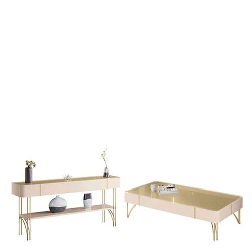 Aparador Vivant com Mesa de Centro Cadenza Champanhe Off White - HB Móveis