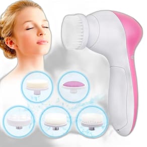 Aparelho 5 em 1 Facial Elétrico Esfoliante Escova Elétrica para Limpeza Facial 5 em 1 Possui 5 acessórios para limpeza, esfoliação e massagem facial. Precauções: Limpe todos os acessórios com água não use álcool, gás ou detergente Mantenha a parte interna da escova de limpeza limpa Utilizar por menos tempo no seu pescoço, pois o pescoço tem a pele fina Mantenha os acessórios longe das crianças Itens Inclusos: 1 Aparelho 5 Acessórios Operado por 2 pilhas AA não incluídas Marca: Não Informado