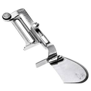Ideal para acabamentos de barra em tecidos finos e médios. Regulagem do espaçamento de fixação na máquina. Compatível com máquinas retas industriais. Não recomendado para tecidos grossos ou com emendas. Proporciona acabamentos precisos e profissionais.