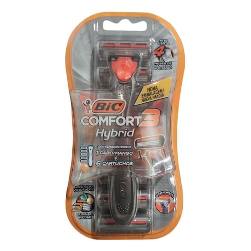 APARELHO DE BARBEAR BIC COMFORT 3 HYBRID Para um barbear mais rente e confortável. Com Aloe Vera e Vitamina E. Cabeça móvel. Contém: 1 aparelho + 6 Cartuchos.