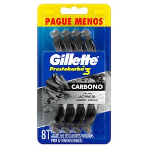Aparelho de Barbear Gillette Prestobarba3 Carbono Tecnologia Comfortgel com Carvão: Fita lubrificante melhorada ativada com água para barbear Melhorada ativada com água para um barbear suave 100% Melhor enxágue 3 Lâminas e cabeça móvel