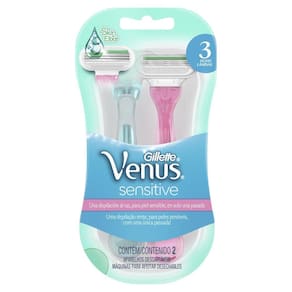 Compre Aparelho de Depilação Gillette Venus Sensitive na Drogaria Araujo! Lubrificantes extras para facilitar o deslizamento. Depilação rente com uma única passada. Confira!
