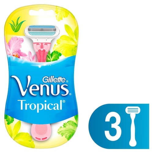 Compre Aparelho para Depilação Gillette Venus Tropical na Drogaria Araujo.Possui 3 lâminas e bordas almofadadas que proporcionam uma depilação rente e suave com uma única passada. Confira!