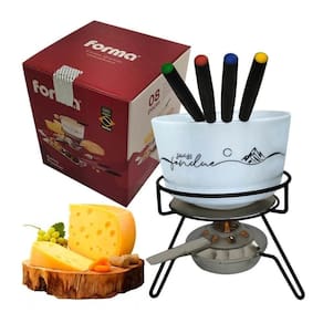 de fondue para até quatro pessoas, o Swiss traz cumbuca em porcelana apoiada em um delicado tripé na cor preta. Remetendo aos antigos aparelhos, traz à memória as mais belas lembranças.