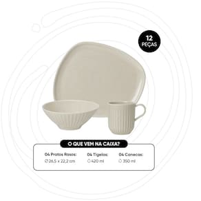 Aparelho de Jantar 12 Peças Luna Sand Oxford - Informações
