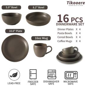 Aparelho de Jantar 16 Peças para 4 Pessoas - Tikooere, Pratos e Tigelas de Cerâmica, Resistente a Arranhões, Seguro para Micro-ondas