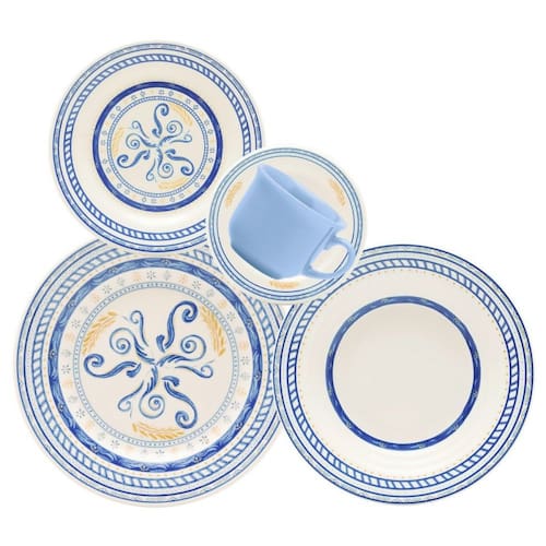 A cor azul na mesa posta é um clássico, um verdadeiro curinga na hora de montar a mesa. Nessa louça, a Oxford colocou a cor azul numa estampa arabesca perfeita para quem prefere uma decoração mais alegre. A xícara azul, sem decoração, cria uma linda composição com as demais peças.