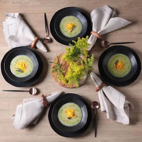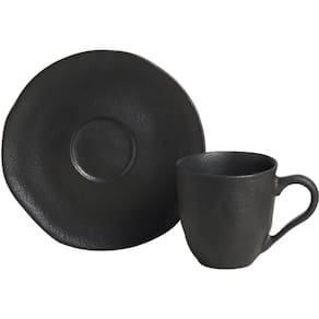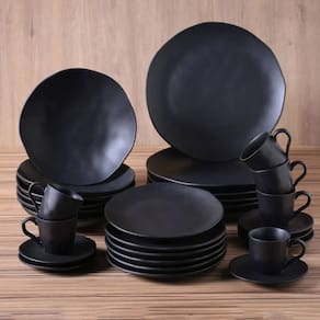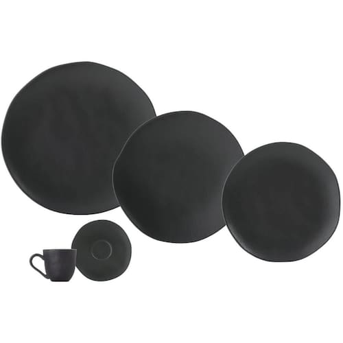 Aparelho de Jantar 30 Peças Orgânico Preto Matte Mesa Posta Porto Brasil 6 Pessoas Pratos e Xícaras