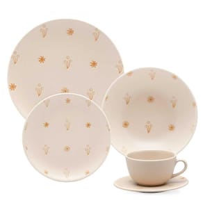 A delicadeza do bordado feito à mão foi traduzida em uma decoração suave com elementos inspirados nos tecidos de Chita, um ícone dos primórdios da indústria têxtil no Brasil. Com efeito acetinado, a coleção Afeto fica ainda mais acolhedora, apresentando delicadas flores em uma base macia ao toque na cor merengue. Essa decoração é outra ótima opção para compor um Mix&Match, principalmente, com outras peças da linha Unni. O aparelho de jantar de 30 peças é composto por 6 pratos rasos, 6 pratos fundos, 6 pratos de sobremesa e 6 xícaras de chá com pires.Conteúdo da embalagem: 6 Pratos Fundos 20,5 Cm, 6 Pratos Rasos 26 Cm, 6 Pratos Sobremesa 18,5 Cm, 6 Xícaras Grandes 200 ML, 6 Pires 14 Cm- Garantia: 3 Meses para Defeitos de fabricação- Marca: Oxford- Tipo da embalagem: Papelão- Uso: Resistente a micro-ondas- Material: Cerâmica- Cor: Amarelo escuro- Formato: Redondo- Linha/Decoração: Unni Afeto- Decoração: Estampado- Formato de venda: Kit- Quantidade de peças: 30- É produto personalizado: Não ATENÇÃO: Para compras de pessoa jurídica, cadastre os dados exatamente como consta em seu cartão do CNPJ. Ean: 7891361352067