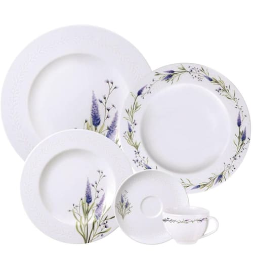 Aparelho de Jantar 30 Peças Tramontina Lilla Porcelana 6 Pessoas Mesa Posta.