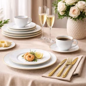 Aparelho de Jantar 30pç Opalino Catarina Fio de Ouro p/ 6pessoas Hauskraft Elegancia Clássica para Todas as Ocasiões com a Linha Catarina da Hauskrat Premium. Com acabamento branco e delicado borda dourada este prato é a expressão do bom gosto e da sofisticação a mesa.Ideal para receber com charme e requinte ele valoriza cada detalhe de sua mesa posta.