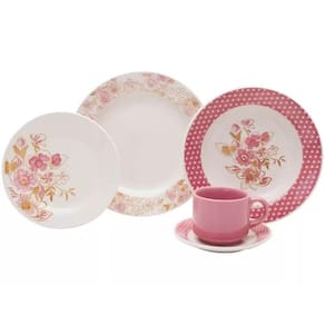 Aparelho de Jantar Chá 30 peças. A Biona traz muito mais entusiasmo na hora da refeição! Ideal para presentar quem você ama, pois a linha Donna aposta em uma mistura certeira em flores tradicionais com cores neutras e modernas. A louça de cerâmica com pratos redondos, é ótima para quem quer praticidade e beleza.
