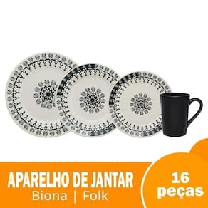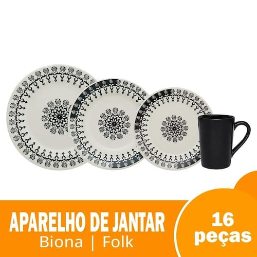 Características do Produto: Marca: Biona Cor: Preto e estampado Material: Cerâmica Linha do Produto: Folk