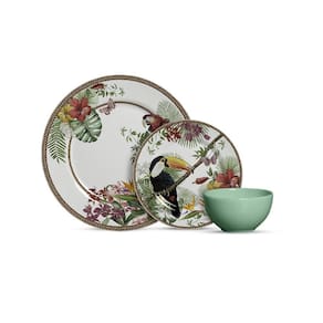 Aparelho de jantar com 12pcs tropicos com bowl verde agua Aparelho de jantar com 12 peças Pode ser em forno de microondas e lava louças Contém: 4 pratos raso largura 28,5 x 28,5 comprimento por 2,2 altura 4 pratos sobremesa largura 19,5 x 19,5 comprimento por 1,8 altura 4 bowls largura 12 x 12 comprimento por 6 altura Material: cerâmica de alta resistência Decorado com equipamento de última geração em impressão digital sobre a base branca Marca: Não Informado Ean: 7908199425846