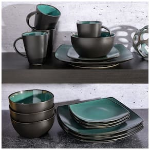 CONTEÚDO DA CAIXA: Serviço para 4 pessoas que inclui 4 de cada um dos seguintes: Pratos de Jantar de 27 centímetros, Pratos de Sobremesa de 20 centímetros, Tigelas de Cereais de 16 centímetros ou 900 mL e Canecas de 350 mL INSTRUÇÕES DE CUIDADOS : lindos pratos pretos e azul petróleo que também podem ser lavados na lava louças e micro ondas Grés, vidro duplo reativo : reativo refere se a uma técnica em que dentro do esmalte reagem juntas para criar uma qualidade vibrante e onírica para as cores e matizes. Devido à natureza reativa do esmalte, cada peça de grés é única. A alta temperatura de queima, construção espessa e mistura de argilas totalmente naturais tornam o grés um material incrivelmente durável. DESIGN MODERNO : esmalte reativo artesanal com tons orgânicos naturais, criando uma elegância moderna para o serviço de jantar. O grés durável e o esmalte reativo tornam esses conjuntos difíceis de arranhar e quebrar SOBRE A MARCA : A Gibson Homewares é uma produtora líder do setor de produtos de mesa e utilidades domésticas com sede em Los Angeles, Califórnia. Propriedade familiar há mais de 40 anos, desenvolvemos uma família de marcas que inclui Martha Stewart, Sur La Table, Crock Pot, Babish, Spice by Tia Mowry, Kenmore, Oster e muito mais que prosperam com o compromisso implacável com o estilo, inovação e valor para nossos consumidores em todo o mundo. SOHO LOUNGE : design contemporâneo e inovador que exemplifica valor e qualidade Marca: Não Informado