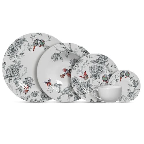 Aparelho de jantar com 20 peças volare plus Aparelho de jantar com 20 peças Pode ser Utilizado em forno de microondas e lava louças Contém: 4 pratos raso largura 28,5 x 28,5 comprimento por 2,2 altura 4 pratos fundo largura 24,5 x 24,5 comprimento por 3,5 altura 4 pratos sobremesa largura 19,5 x 19,5 comprimento por 1,8 altura 4 pires 4 xícaras para chá