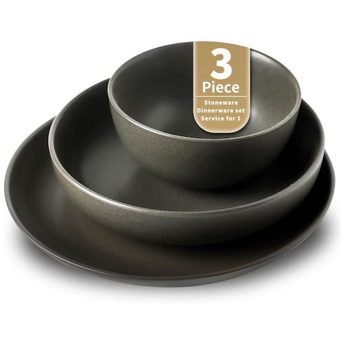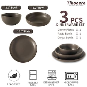 O Conjunto de Jantar 3 Pçs da Tikooere inclui 1 prato de jantar, tigelas de massa e tigela de sopa - ideal para servir uma refeição completa para a família ou convidados. Projetado para uso moderno cotidiano e encontros de fim de semana, este conjunto coordenado se adapta desde cafés da manhã casuais até jantares formais com facilidade e elegância. Cada peça da coleção de cerâmica da Tikooere possui um esmalte fosco artesanal em preto ousado, adicionando uma textura refinada e não brilhante que resiste a escorregões e marcas de dedos. O design empilhável economizador de espaço é ideal para cozinhas menores ou prateleiras abertas estilosas. Seguro para lava-louças e micro-ondas, esse conjunto de pedra e cerâmica é construído para durabilidade e resistência de longa duração. Um presente elegante para entusiastas culinários e novos proprietários, este conjunto de jantar Tikooere impressiona com sofisticação e praticidade.