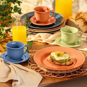 O doce francês Canelé inspirou a coleção que leva o seu nome. A iguaria ganhou o coração dos franceses por ser feita de maneira simples, já que o destaque fica para o seu formato canelado, relevo que foi aplicado na aba dos pratos da coleção. Na decoração Azul recebe uma tonalidade forte e discreta. Com um amplo portfólio de produtos para a casa, o Grupo Oxford apresenta ao mercado peças que unem design e funcionalidade. Suas peças são encontradas em lares de todo Brasil e em mais de 60 países. Resistente a micro-ondas e resistente a lava-louças. ESPECIFICAÇÕESFornecedor: OxfordMedida do produto: xx cm (LxCxA)Peso do produto: 7760 gramasItens inclusos: 04 Pratos Rasos 24 cm; 04 Pratos Fundos 21,5 cm; 04 Pratos Sobremesa 18 cm; 04 xícara com pires 14 cm.Material (Composição): cerâmica.