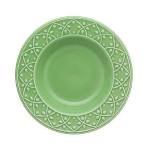 Na Índia, as pinturas mehndi são usadas principalmente pelas mulheres em cerimônias de casamento. A Oxford Daily foi buscar inspiração nesse tipo de pintura para criar as formas que decoram as bordas desses pratos em alto-relevo. A cor Sálvia é puro frescor e vai levar mais refrescância e suavidade para a mesa. conteúdo da embalagem: 6 pratos rasos com 26cm de diâmetro / 6 pratos fundos com 23cm de diâmetro / 6 pratos para sobremesa com 20cm de diâmetro / 6 xícaras para chá com 220ml de capacidade / 6 pires para chá com 15cm de diâmetro- Garantia: 3 Meses para defeito de fábrica- Uso: Resistente a micro-ondas e lava-louças- Tipo da embalagem: Papelão pardo- Tipo: Jantar e almoço- Material: Cerâmica- Cor: Verde- Formato: Redondo- Nome do desenho: Mendi Salvia- Utilizações seguras: Micro-ondas e lava-louças- Tipo do jogo: Jantar e almoço