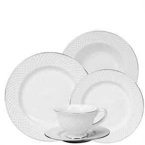Aparelho de Jantar e Chá 30pç Porcelana Joaquina Filete Prata
