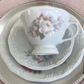 - Medidas: Prato Fundo 23 cm, Prato Sobremesa 19 cm, Prato Raso 26 cm, Xícara chá 200 ml, Xícaras de Café 80ml.