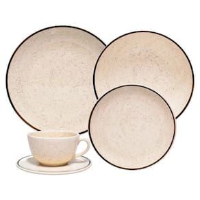 O jogo é composto por 20 peças redondas que são produzidas em porcelana de altíssima qualidade na cor bege claro com bordas e detalhes marrons, que traz uma sensação de leveza a sua mesa.