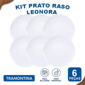 Aparelho de Jantar Jogo de Pratos Raso 25 cm Tramontina Leonora em Porcelana Decorada 6 Peças