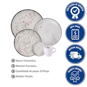 APARELHO DE JANTAR TRAMONTINA FLORALIS EM PORCELANA DECORADA 20 PEÇAS - 96589042 Marca: Tramontina Modelo: Floralis 20 Peças 96589/042