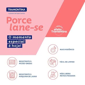 DESCRIÇÃO DOS PRATOS DE PORCELA TRAMONTINA 20 PEÇAS - Os produtos Tramontina Porcelana completam as suas refeições e agregam muito mais beleza a sua mesa. - De porcelana Tradicional e exclusiva Tramontina, que é translúcida, tem excelente brancura e brilho, alta resistência mecânica e porosidade próxima de zero, são a escolha ideal para compor uma decoração diferenciada e cheia de estilo!