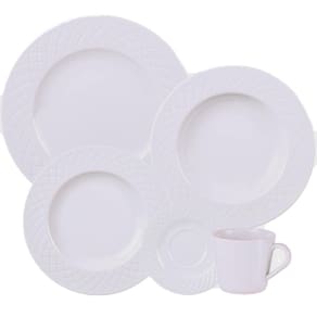 Aparelho de Jantar Tramontina Ingrid 20 Peças Porcelana Decorada Branco.
