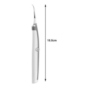 Duas cabeças de função diferentes: - primeira, ponta de aço inoxidável para ajudar na remoção dos tártaros e manchas mais difíceis. - segunda, ponta de fio dental de silicone para ajudar na limpeza de alimentos e manchas.