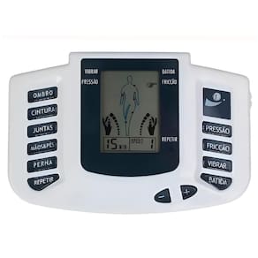 Aparelho de Massagem Choque Fisioterapia com Eletrodos Aparelho de Massagem Choque Fisioterapia com Eletrodos: Alívio e Bem-Estar ao Seu Alcance Dê um basta no desconforto e recupere o bem-estar com o nosso avançado Aparelho de Massagem Choque Fisioterapia com Eletrodos Este dispositivo inovador é a solução perfeita para quem busca alívio de dores musculares, redução de tensões e uma recuperação física eficaz, tudo isso no conforto do seu lar. Por que escolher o nosso Aparelho de Massagem Se você sofre com dores crônicas, tensão muscular ou deseja acelerar sua recuperação após exercícios físicos, este aparelho é ideal para você. Ele envia impulsos elétricos suaves que ajudam a relaxar os músculos e aliviar a dor, proporcionando um alívio imediato e eficaz. Benefícios do Aparelho de Massagem Choque: - Alívio de Dores Musculares: O aparelho é projetado para aliviar dores e tensões, permitindo que você retome suas atividades diárias sem desconforto. - Melhora da Circulação: Os impulsos elétricos estimulam a circulação sanguínea e a oxigenação dos tecidos, auxiliando na recuperação muscular após exercícios intensos ou lesões. - Relaxamento Profundo: Promove um relaxamento muscular profundo, aliviando a tensão acumulada devido ao e má postura, proporcionando uma sensação de bem-estar. - Fácil Aplicação: Com a possibilidade de fixação em diversas partes do corpo, como costas, ombros, pernas e abdômen, você pode personalizar seu tratamento de acordo com suas necessidades. - Painel de Controle Intuitivo: O painel de controle é fácil de usar, com uma tela LCD clara que facilita a seleção dos modos e o ajuste da intensidade, tornando a experiência ainda mais agradável. Especificações Técnicas: - Modelo: Aparelho de Massagem com Eletrodos - Material: Plástico/componentes Elétricos - Frequência: 1-50hz - Potência: 2.5W - Fonte de Alimentação: DC 5 V - Modos de Massagem: 10 modos - Níveis de Potência: 8 níveis - Voltagem: 110v - Utilização: Pode ser utilizado com 2 ou 4 eletrodos ao mesmo tempo - Dimensões Aproximadas: 5cm ALTURA x 10cm LARGURA x 15cm COMPRIMENTO - Fonte de Alimentação: Cabo de Alimentação ou 3 Pilhas AA Itens Inclusos: - 01x Aparelho de fisioterapia - 08x Adesivos de contato ELETRODOS - 01x Cabo de 4 saídas para tratamento - 01x Cabo de 2 saídas para tratamento - 01x Cabo de alimentação - 01x Manual de Satisfação: 1. O aparelho é seguro para uso Sim, o Aparelho de Massagem Choque é projetado com segurança em mente e é adequado para uso em casa. 2. Posso usar o aparelho todos os dias Sim, você pode usar o aparelho diariamente, mas recomendamos que você siga as instruções do manual para obter os melhores resultados. 3. Os eletrodos são reutilizáveis Sim, os eletrodos podem ser reutilizados várias vezes, mas é importante mantê-los limpos e em boas condições. 4. Qual é a voltagem do aparelho O aparelho funciona com voltagem de 110v e pode ser alimentado por cabo ou pilhas. 5. O que fazer se o aparelho não funcionar Não perca a oportunidade de transformar sua qualidade de vida Adquira já o seu Aparelho de Massagem Choque Fisioterapia com Eletrodos e sinta a diferença