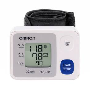 APARELHO DE PRESSÃO OMRON AUTOMÁTICO PULSO CONTROL HEM 6124 Com sensor de posicionamento - para medição correta e precisa. Detecta batimentos cardíacos irregulares. Sensor de posicionamento. 30 memóri