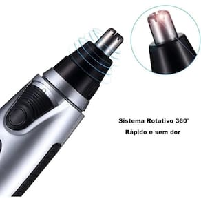 Aparelho Depilador De Pelos Nariz Ouvidos Cortador Aparador - Aparador de pelos do nariz e orelha, prático, leve e portátil - Extrema precisão de corte devido a lâmina de alta eficiência. - Apare de forma precisa e uniforme. - Alimentação: 1 Pilha AA Não Inclusa