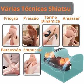 Aparelho Elétrico de Reflexologia Bivolt com Função de Massagem Shiatsu para Pés e Pernas com 2 Motores Rotativos O Shiatsu de Pés oferece uma massagem profunda e relaxante, aliviando dores e tensões musculares com eficácia. Seu design anatômico permite o uso confortável tanto nos pés quanto nas pernas, proporcionando um relaxamento completo. Equipado com internas, ele promove um alívio instantâneo ao combinar movimento rotativo com leve aquecimento, ativado após 5 minutos de uso somente nas , sem emissão de vapor . Para garantir a segurança, o possui um dispositivo de proteção contra superaquecimento e um sistema de desligamento automático após 15 minutos de uso. Aconselha-se a evitar a aplicação de peso excessivo sobre o aparelho, já que isso pode prejudicar o funcionamento das internas. O uso adequado proporciona uma experiência de relaxamento ideal. Principais Benefícios: Massagem Shiatsu profunda e eficaz nos pés. Design anatômico que garante conforto durante o uso. Leve e silencioso, ideal para uso em casa ou no escritório. internas que promovem relaxamento muscular. Equipado com 2 motores rotativos super silenciosos. Pode ser utilizado tanto nos pés quanto nas pernas. Fácil de limpar e manter. 3 níveis de intensidade ajustáveis. Leve aquecimento nas após 5 minutos de uso. Indicações de Uso: Relaxamento e alívio da tensão muscular. Alívio de dores nos pés e pernas. Melhora da circulação sanguínea. Especificações Técnicas: Modelo: Shiatsu. Alimentação: Bivolt 110v/220v . Dimensões: 30 cm x 19 cm x 14 cm. Peso: 1,3 kg. Marca: Não Informado