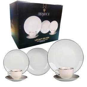 Aparelho de Jantar 42 Peças Em Porcelana Filetes Prateados - l'hermitage