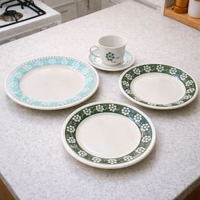 Delicadeza para encantar no dia a dia. A linha Donna Bosque tem a natureza como estrela principal da decoração, com a estampa de pequenas flores e ramos na aba de cada prato. A proposta é monocromática variando entre tonalidades da cor verde