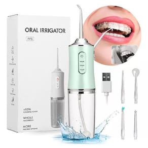 Aparelho De Limpeza De Implantes Dentários Jato De Água Portátil Recarregável USB 220ml Jato D Água Irrigador Limpador Bocal Dental Dentes Gengiva Oral Recarregável USB 220ml com 4 Bicos Características do produto Tipo de alimentação: Recarregável Capacidade de água: 220 ml É sem fio: Sim Quantidade de bicos: 4 Quantidade de níveis : 3 É à prova d'água: Não Características gerais Quantidade de irrigadores orais 1 Pressão: Pressão máxima 75 psi Quantidade de níveis 3 Funções do bico Limpeza Especificações Tipo de alimentação Recarregável Capacidade de água 220 ml Quantidade de bicos 4 Tipos de irrigador Recarregável Acessórios incluídos Aparelho - Cabo USB - Ponta Acrílica É recarregável Sim É sem fio Sim Tempo de uso 1 h Descrição Descrição do Produto: A ferramenta para uma higiene bucal completa Realiza limpeza profunda entre os dentes e abaixo da linha da gengiva por meio de jatos pulsativos de água e remove resíduos de alimentos e bactérias de áreas em que a escovação e o fio dental tradicional não alcançam. Ideal para limpeza de próteses, implantes ou para pessoas com dificuldades motoras de escovação e higienização bucal. Mais efetivo: Mais compacto: seu design elegante e cabo mais finos não apenas parecem elegantes, mas ocupam menos espaço no banheiro. Substituímos um fluxo constante de água por fortes jatos pulsantes que afastam as bactérias. Além disso, você pode economizar tempo e dobrar a limpeza com a ponta da escova, que combina o uso do fio dental com a escovação completa. Limpeza perfeita em toda a boca CARACTERÍSTICAS Auxiliar na limpeza necessária e garantir dentes saudáveis e hálito fresco. Portátil Limpeza 360 por meio de jatos pulsantes de água entre os dentes e região da gengiva. Limpeza profunda prática e sem dor Manuseio é simples e fácil Três vezes mais efetivo que o uso do fio dental Recarregável Ideal para limpeza de e remoção da placa bacteriana Itens inclusos: - Irrigador oral. - 4 bicos diferentes para limpeza mais eficiente. - Cabo USB para carregar. Dicas importantes: 1. Limpe suavemente a unidade e o reservatório de água com um pano macio e úmido 2. Esvazie e seque o tanque de água quando não estiver em uso por um longo período 3. Recomenda-se carregar totalmente este irrigador oral para primeira utilização 4. Segure a unidade na posição vertical com a ponta do bico voltada para os dentes 5. Nunca submergir a unidade principal na água, nem usar embaixo do chuveiro Marca: Não Informado